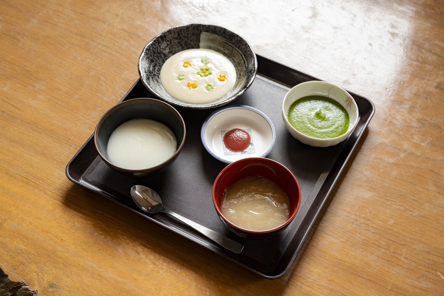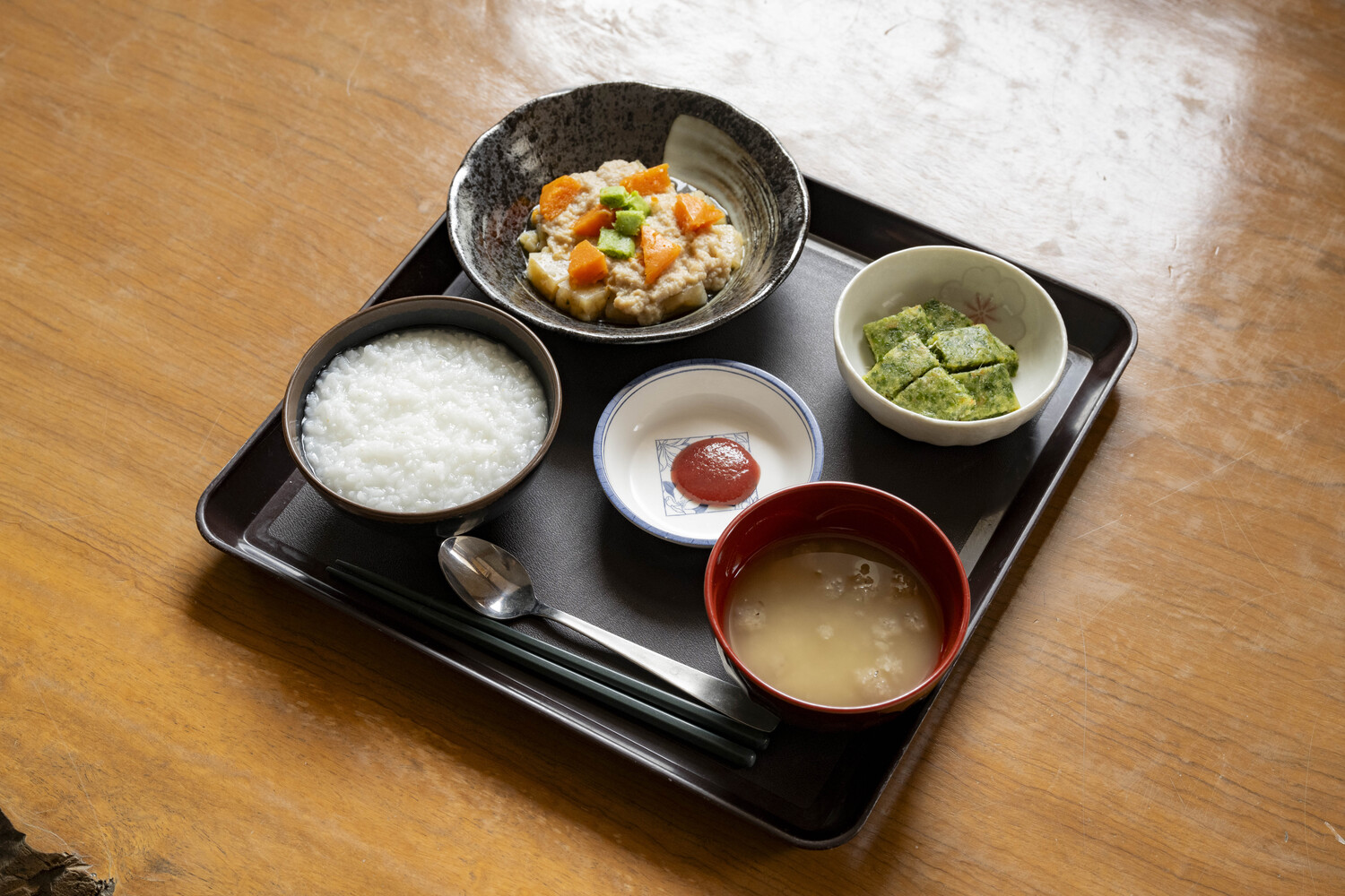 愛華の郷では、利用者様の食べやすさに合わせて、普通食・刻み食・ソフト食・ミキサー食・ゼリー食の5種類のお食事をご用意しています。
